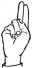 На ћирилици написано ДЕНИС ВЛАДУЛОВ састоји се из 13 слова [?]. Исписано ћириличном једноручном азбуком за глувонеме:
